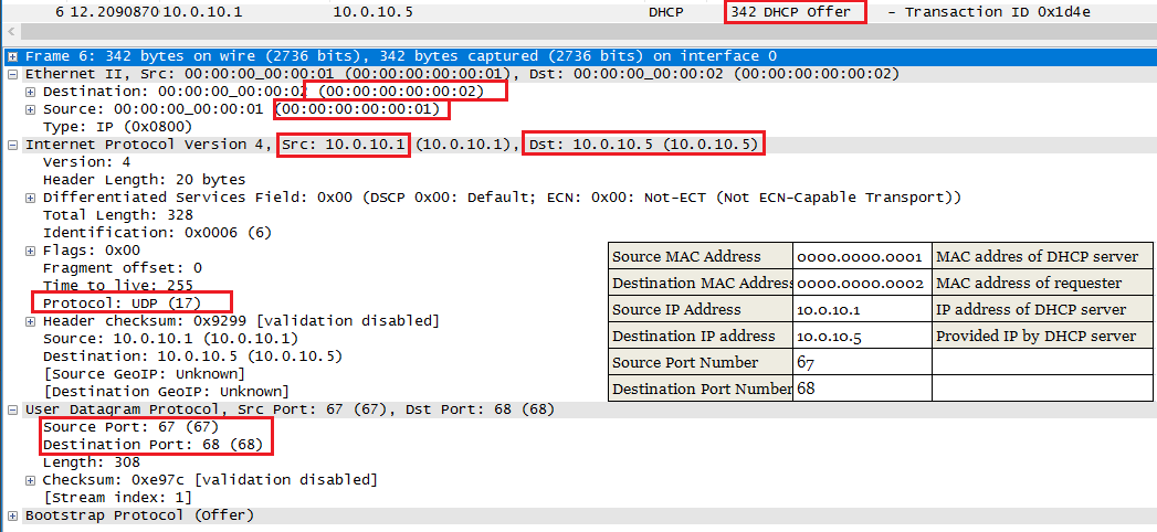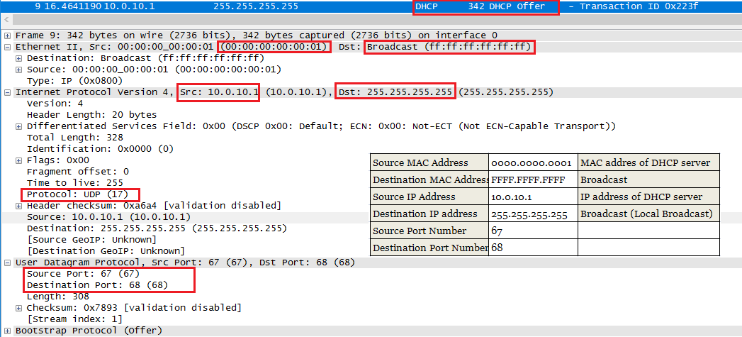 1. When a device which is configured to use DHCP Server to get IP address starts, Device sends a DISCOVER message as broadcast using below info.