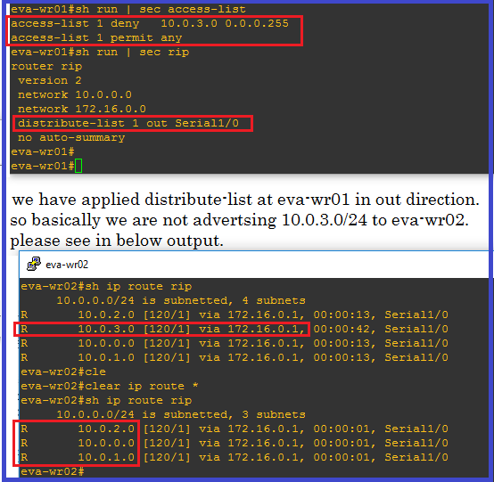 We use distribute-list to filter routing update out/in direction in particular IGP. we can call ACL or Prefix-list or route-map to perform routing update filtering using Distribute List.
