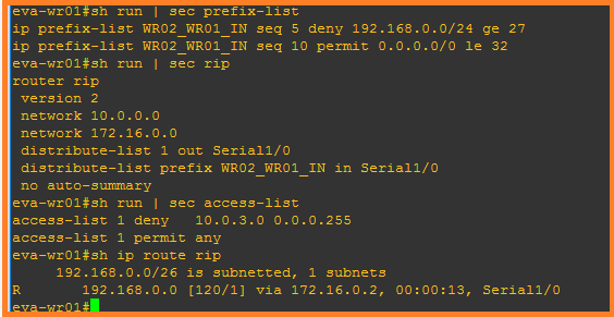 ip prefix-list EVA_FILTER_TEST seq 20 deny 192.168.10.0/24 ge 27 le 32