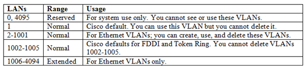 VLANs are referenced by number (0-4095). Because of historical reasons some VLAN numbers are considered to be Normal whereas some others are considered to be extended.