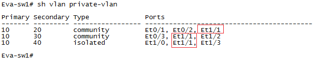 As per our topology port which is going to router is promiscuous port and see the show vlan private-vlan output where we can see this port (eth1/1) is showing in all VLAN.