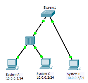 Let’s assume destination is known and connected to same collision domain then eva-sw1 does filtering means other segments or collision domain is not get affected to it. In our diagram you can think about filtering when we are communicating from System-A to System-C.
