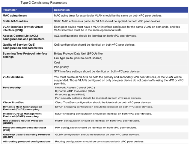 6. Verify vPC consistency parameters.